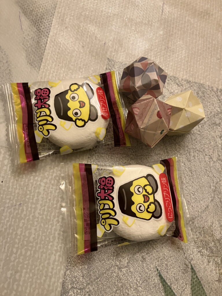 中身はというと、お菓子と折り紙で作った何か。